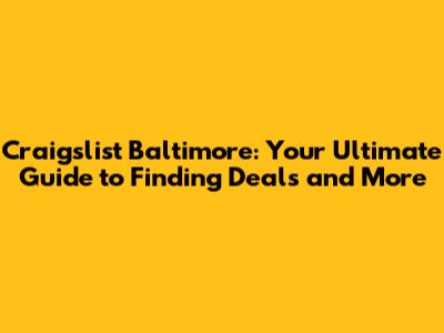 Craigslist Baltimore: Your Ultimate Guide